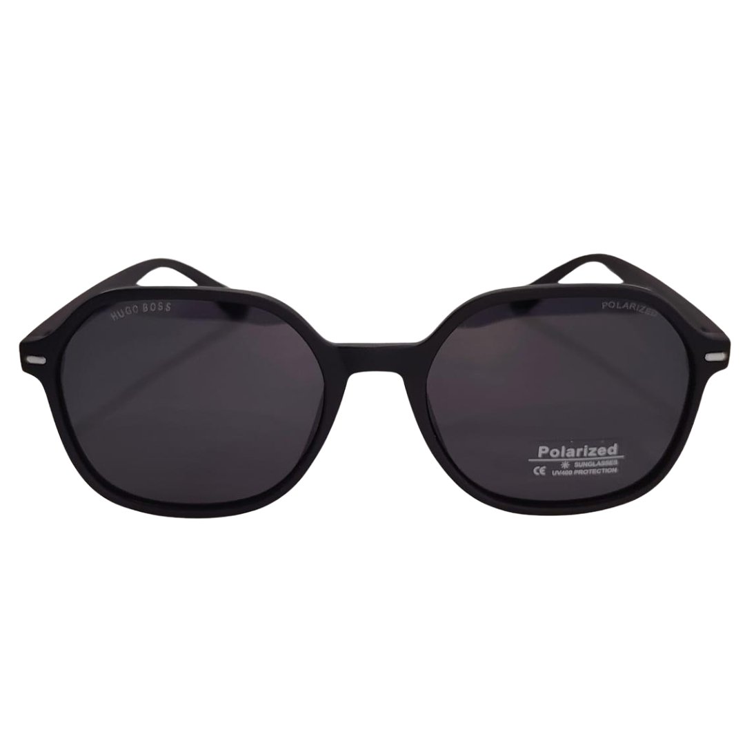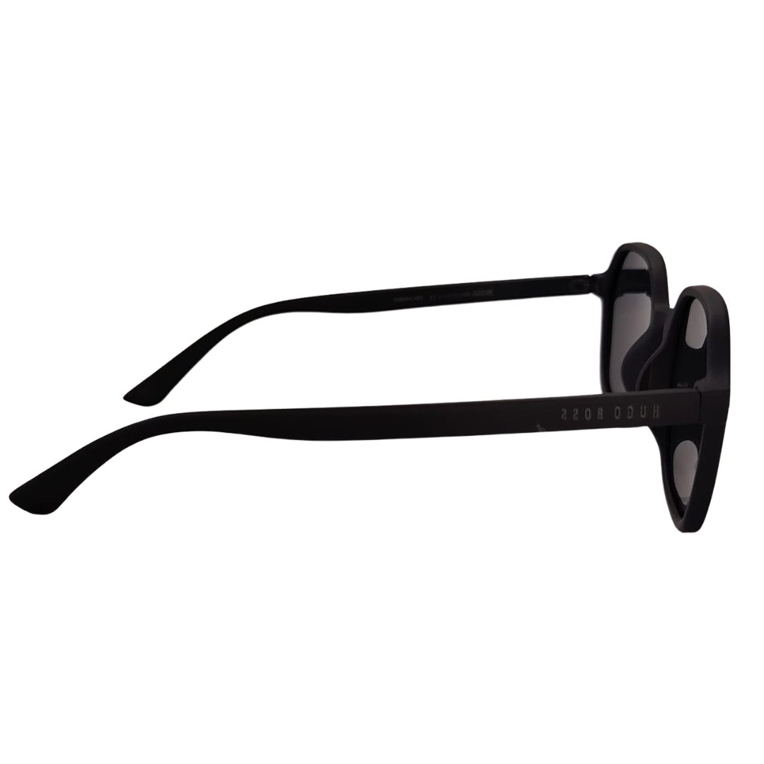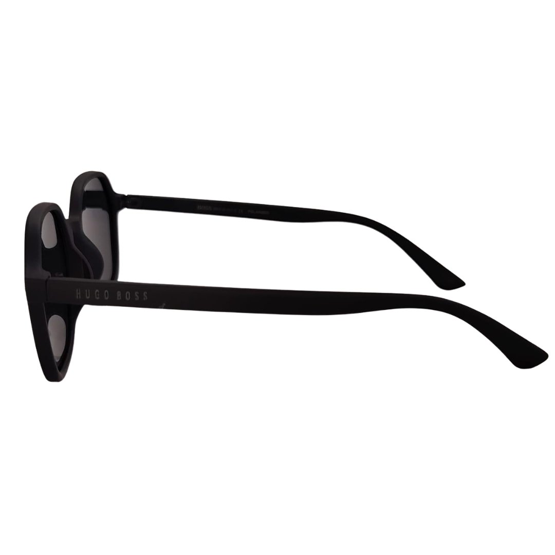 Estas gafas Hugo Boss de forma hexagonal en negro mate ofrecen estilo y protección.